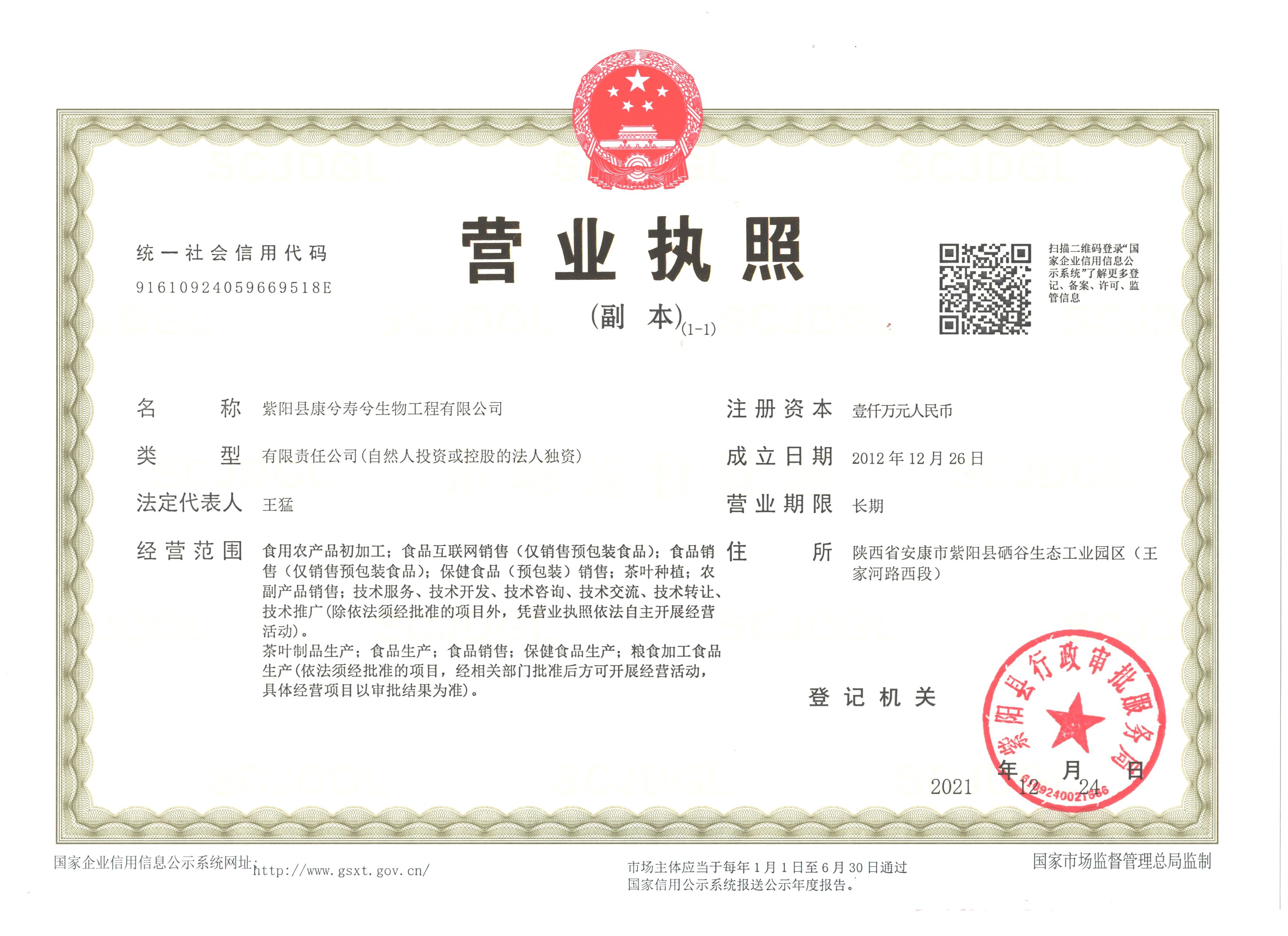 紫阳县康兮寿兮生物工程有限公司