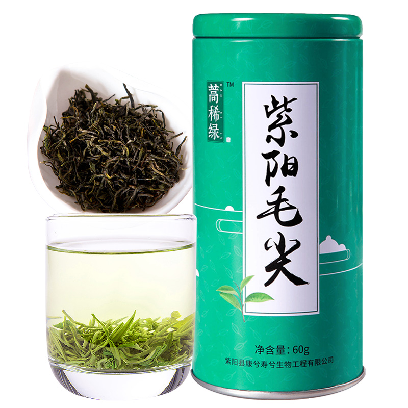 本产品所用的鲜叶,采自绿茶良种紫阳种和紫阳大叶泡,茶芽肥壮,茸毛特多。加工工艺分为杀青、初揉、炒焙,复揉、初烘、理条、复烘、提毫、足干,焙香十道工序。该茶的特点是,外形条索圆紧细、肥壮、匀整,色泽翠绿,白毫显露,内质香气嫩香持久,汤色嫩绿、清亮,滋味鲜爽回甘,叶底肥嫩完整,嫩绿明亮。紫阳毛尖不仅品质优异,而又发现此茶富含人体必需的微量元素一硒,具有较高的保健和药用价值。